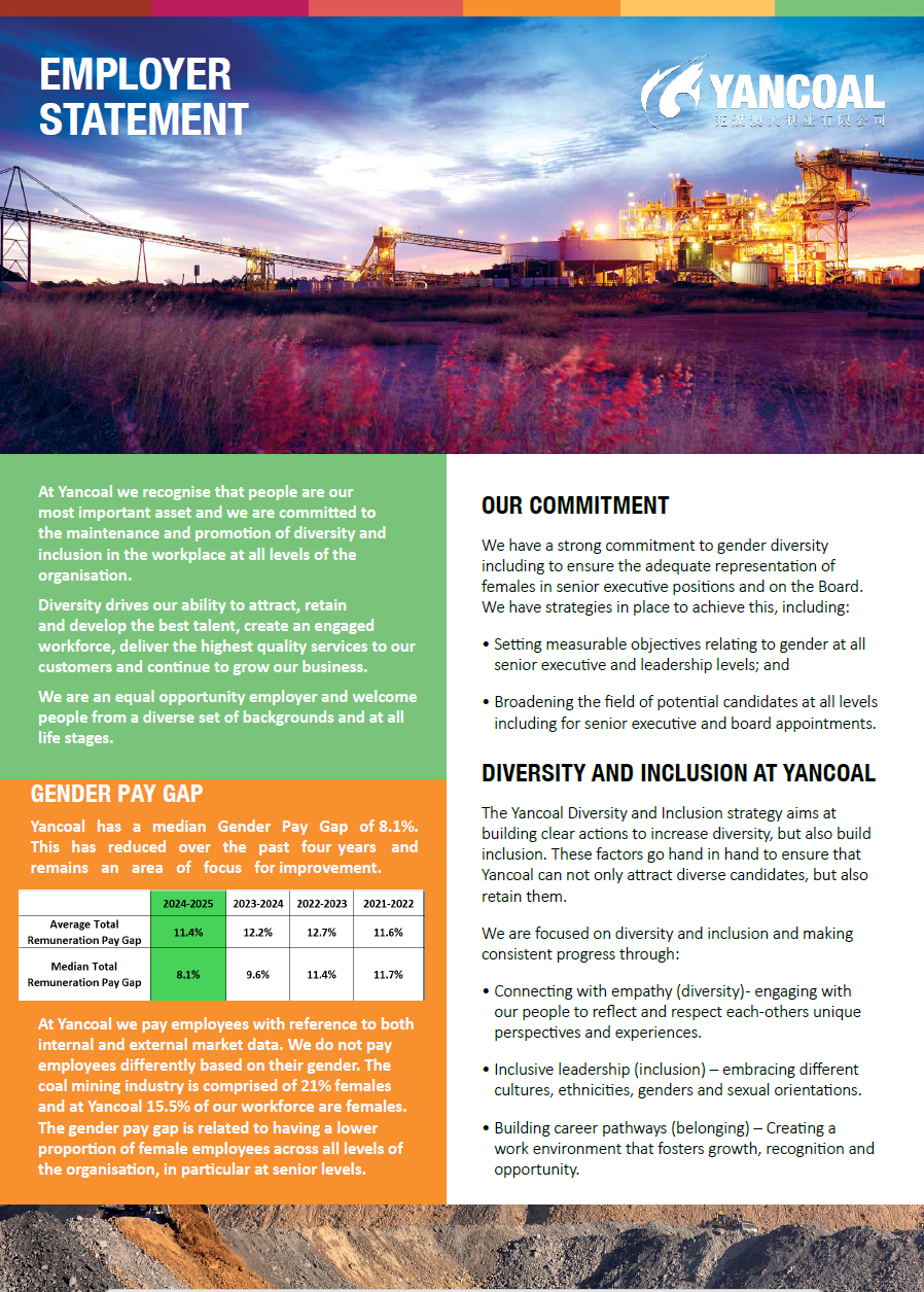 Sustainability not only reflects our commitment to environmental stewardship, social contribution and robust governance processes, but also Yancoal’s resolve to shift towards a future in which sustainability values are reflected in all areas of the business.